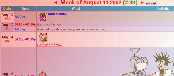 « List View » List view displays your events in the specified date range in a condensed, detailed list. Days with no events scheduled are skipped. List View